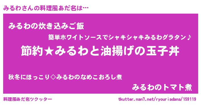 | 女子向けラノベタイトル風あだ名 | 『みるわ姫と円卓の騎士』 |
