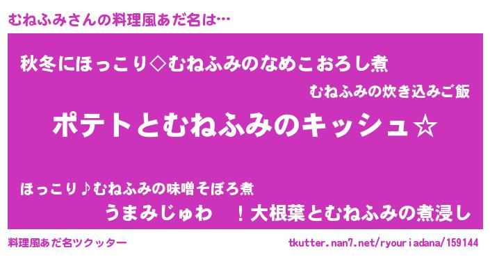| 女子向けラノベタイトル風あだ名 | 『むねふみの卵を拾いまして』 |