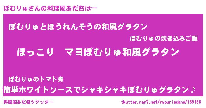 | 胡散臭い通販商品みたいなあだ名 | 『あなたにだけ特別に提供する世界で10本だけ現存している希少なブランデー…その名も「ぼむりゅ」』 |