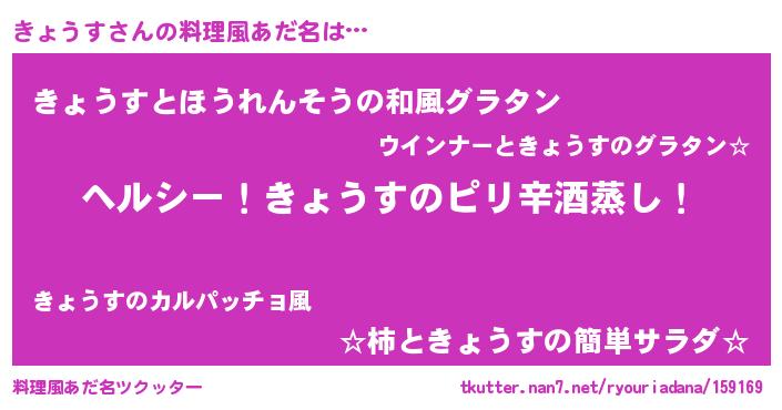 | ヒーロー風カッコイイあだ名 | 『究極戦士キョウス』『仮面キョダー』 |