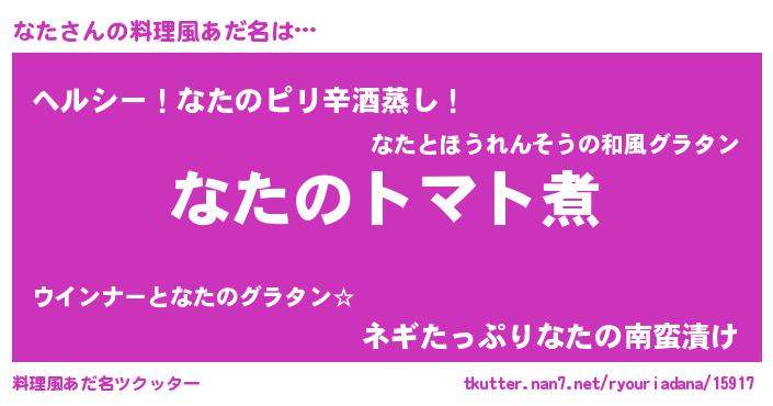 | 女子向けラノベタイトル風あだ名 | 『なた夫妻のなれそめ』『なた伯爵の花嫁』 |