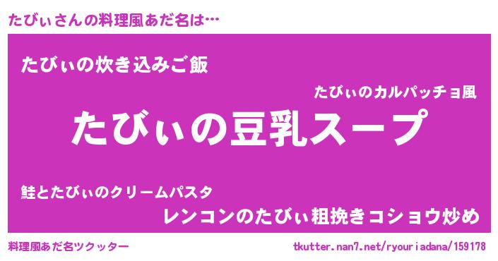 | ピコ太郎風あだ名 | 『タビ太郎』『タタ太郎』『ピコタ郎』 |