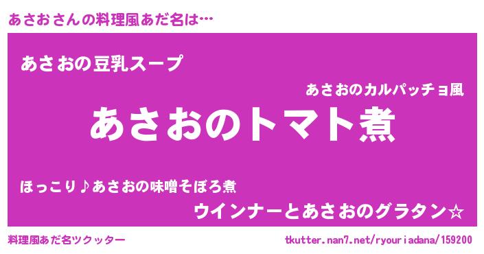 | ヒーロー風カッコイイあだ名 | 『正義の使者あさお』『魔戒騎士アサ』 |