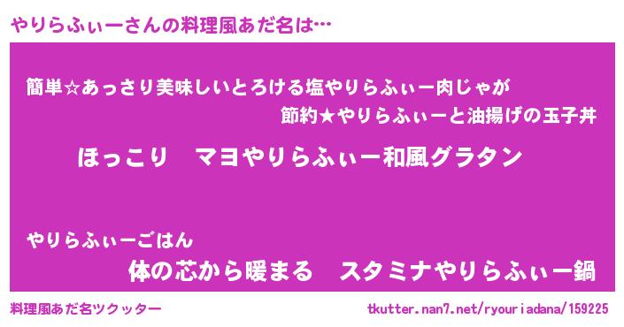 | 意味不明あだ名 | 『住所不定無職やりらふぃー(43歳)』 |