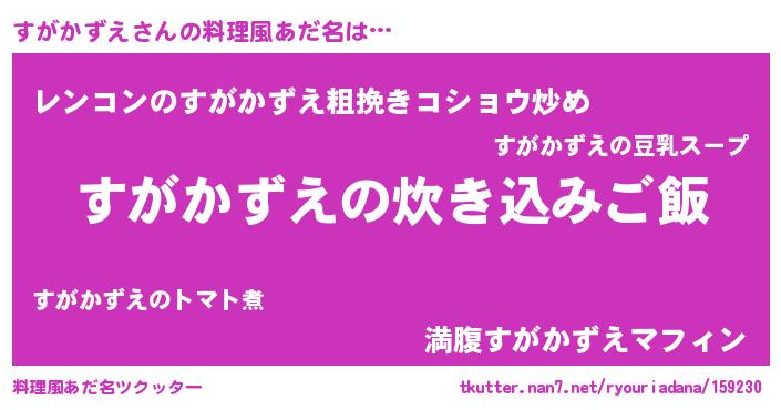 | 男性向けラノベタイトル風あだ名 | 『うちのすがかずえが世界を掌握している!』 |