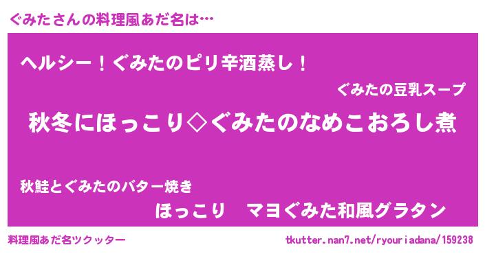 | 意味不明あだ名 | 『自称ぐみた』『住所不定無職ぐみた(4歳)』 |