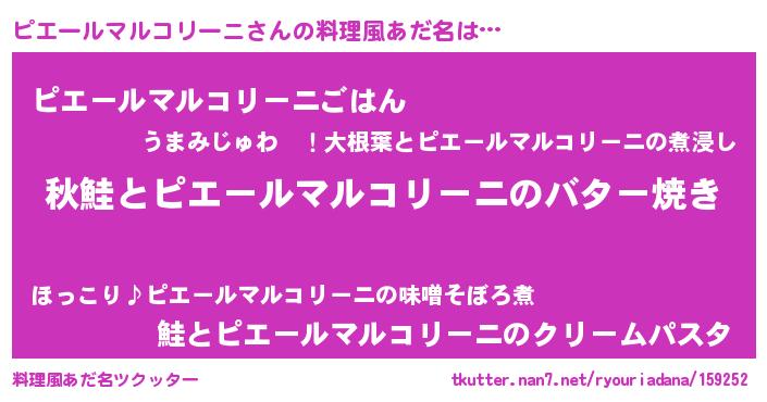 | ヘコむあだ名 | 『ピエールマルコリーニ(小並感)』『ピエを』 |