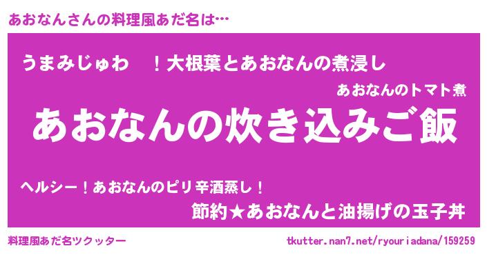 | ヒーロー風カッコイイあだ名 | 『ウルトラあおなんマン』『ネオアオナン』 |