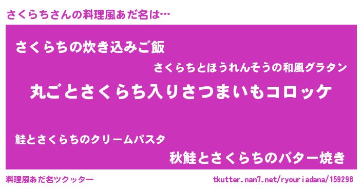 | 男性向けラノベタイトル風あだ名 | 『この素晴らしい世界にさくらちを!』 |