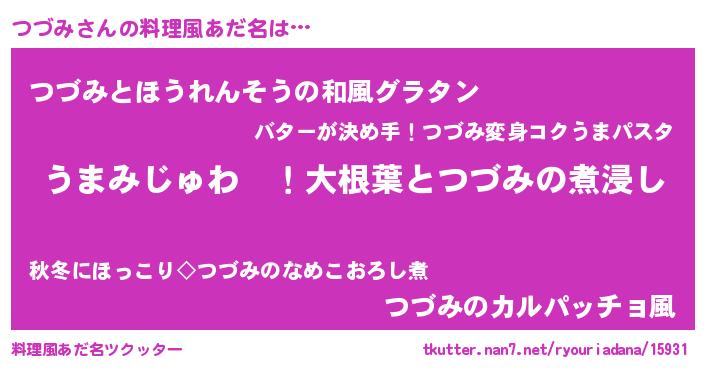 | ファンタジー風あだ名 | 『エターナルツヅミー』『ヴァルツヅーナ』 |