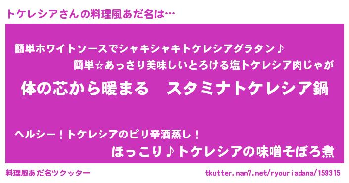 | ポケモン風あだ名 | 『トケレダネ』『ヒトケレシア』 |