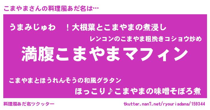 | ファンタジー風あだ名 | 『コマディッシュ』『コマフェル』 |