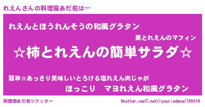 | 男性向けラノベタイトル風あだ名 | 『緋弾のレエン』『はたらくれえんさま!』 |