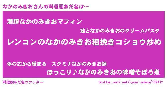 | 女子向けラノベタイトル風あだ名 | 『なかのみきおなんてお断りですっ。』 |