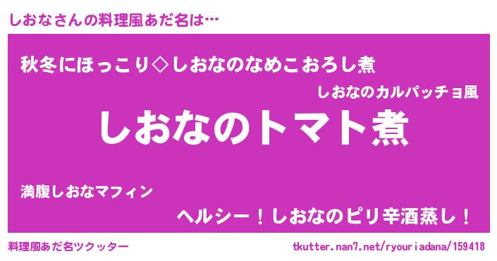 | ヘコむあだ名 | 『しおな(笑)』『しおにー』『つくし』 |