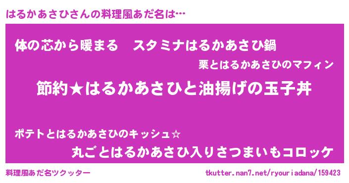 | 男性向けラノベタイトル風あだ名 | 『はるかあさひの憂鬱』 |