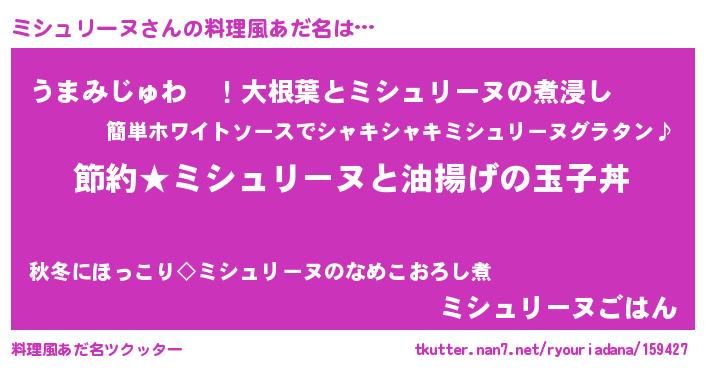 | ポケモン風あだ名 | 『ミシチュウ』『ミシュダネ』 |