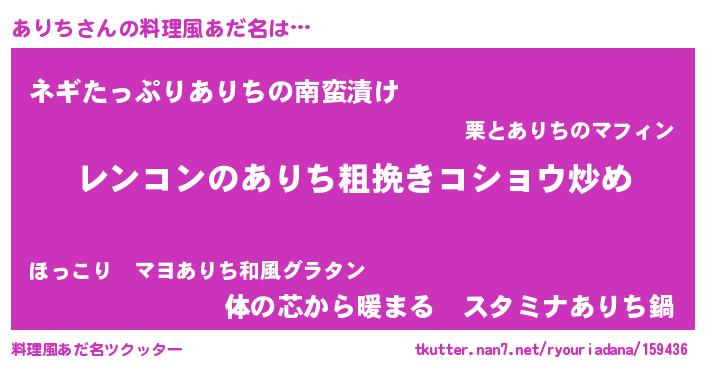 | 意味不明あだ名 | 『自称ありち』『ペロリンありち』 |