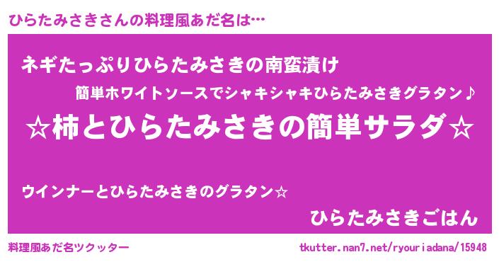 | 欧米人風あだ名 | 『ひらたみさき・ステッグマイヤー』 |
