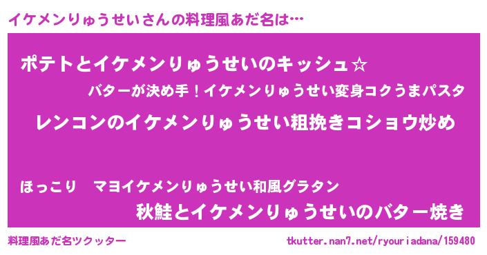 | 胡散臭い通販商品みたいなあだ名 | 『テレビで話題の高麗人参…その名も「イケメンりゅうせい」』 |