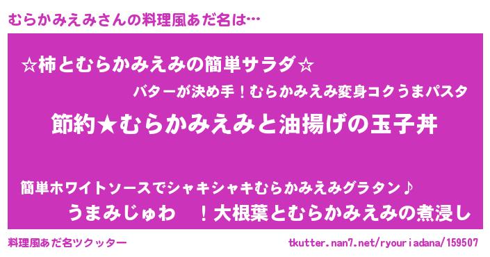 | 恥ずかしいあだ名 | 『プリティーむらかみえみ』『むらっちょ』 |