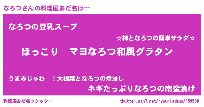 | 男性向けラノベタイトル風あだ名 | 『この素晴らしい世界になろつを!』 |