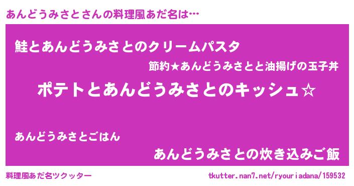 | 男性向けラノベタイトル風あだ名 | 『あんどうみさとの嫁は女の子じゃないと思った?』 |