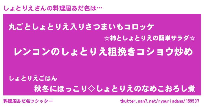 | ヘコむあだ名 | 『しょとりえ(震え声)』『しょにー』 |