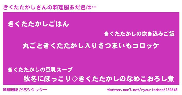 | 女子向けラノベタイトル風あだ名 | 『乙女ゲームの破滅フラグしかない悪役きくたたかしに転生してしまった…』 |