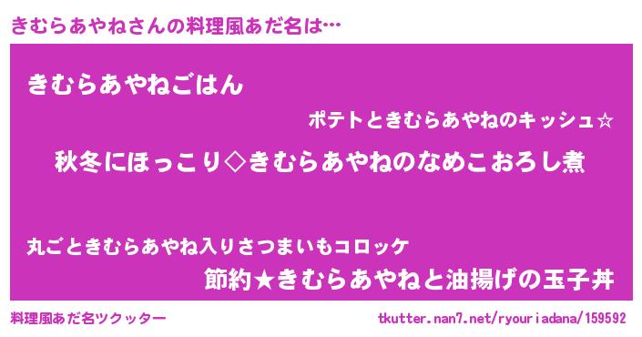 | 恥ずかしいあだ名 | 『プリティーきむらあやね』『きむっちょ』 |