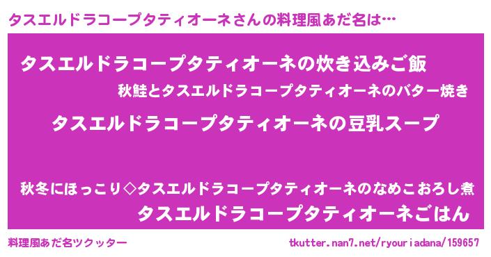 | 意味不明あだ名 | 『とにかく怪しいタスエルドラコープタティオーネ』 |