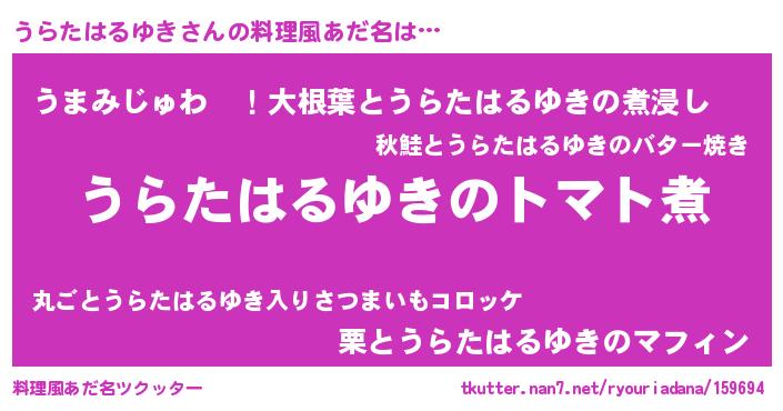 | 男性向けラノベタイトル風あだ名 | 『おまえをオタクにしてやるから、俺をうらたはるゆきにしてくれ! 』 |