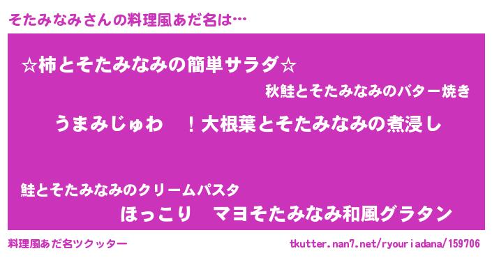 | ヘコむあだ名 | 『レバニラ』『そたみなみ(爆)』 |