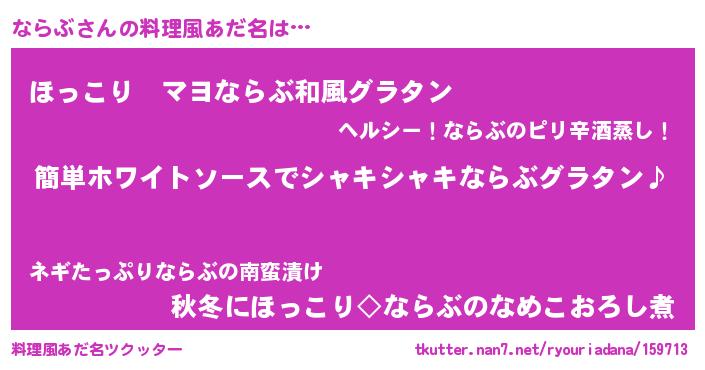 | ヘコむあだ名 | 『ならっ子』『ならもー』『なまこ酢』 |