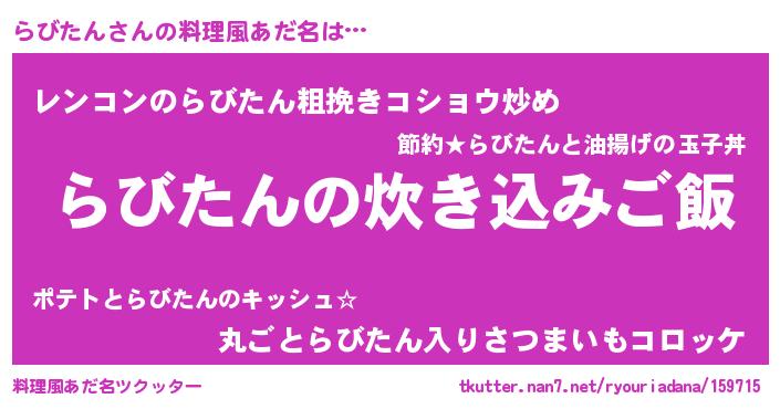 | 胡散臭い通販商品みたいなあだ名 | 『テレビで話題のアガリクス…その名も「らびたん」』 |