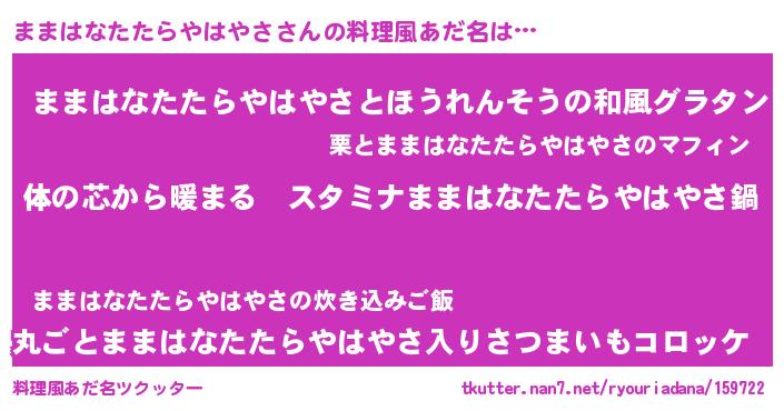 | ファンタジー風あだ名 | 『エターナルママハナタタラヤハヤサー』 |