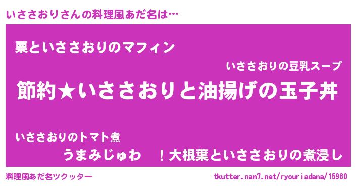 | 男性向けラノベタイトル風あだ名 | 『いささおりの憂鬱』 |