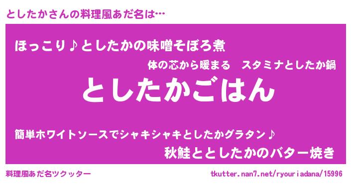 | 胡散臭い通販商品みたいなあだ名 | 『必ず成功するブレスレット…その名も「としたか」』 |