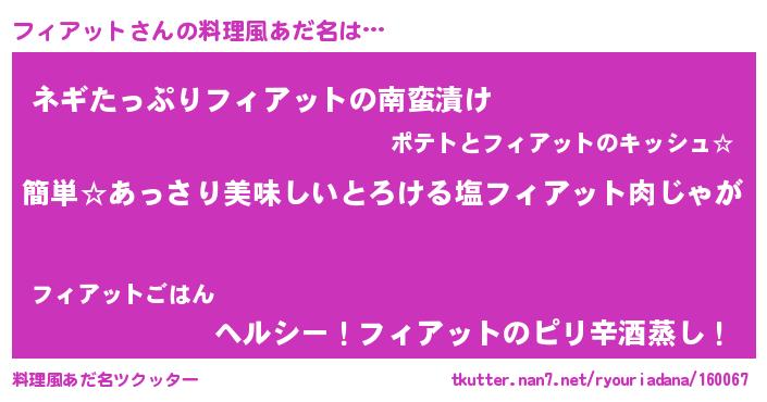 | 意味不明あだ名 | 『永久保存フィアット』『自称フィアット』 |