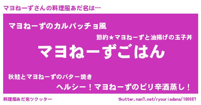 | 男性向けラノベタイトル風あだ名 | 『転生したらマヨねーずだった件』 |