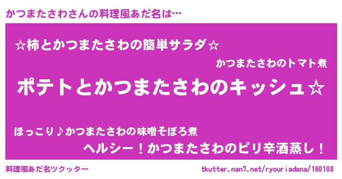 | 胡散臭い通販商品みたいなあだ名 | 『伝統あるサプリメント…その名も「かつまたさわ」』 |