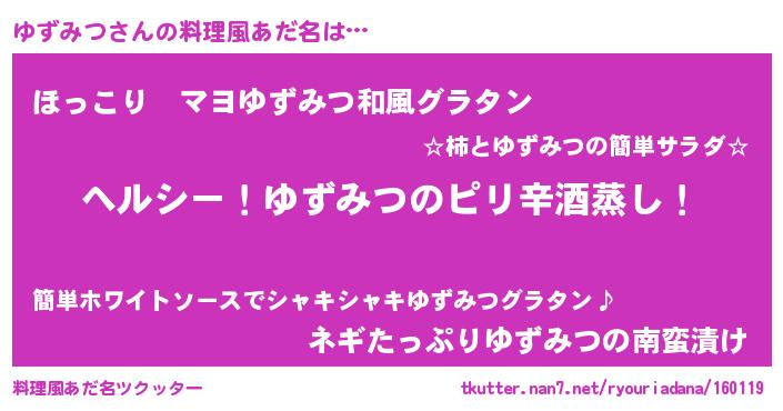 | ヒーロー風カッコイイあだ名 | 『究極戦士ユズミツ』『仮面ユズダー』 |