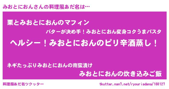 | 胡散臭い通販商品みたいなあだ名 | 『芸能人もオススメするアガリクス…その名も「みおとにおん」』 |