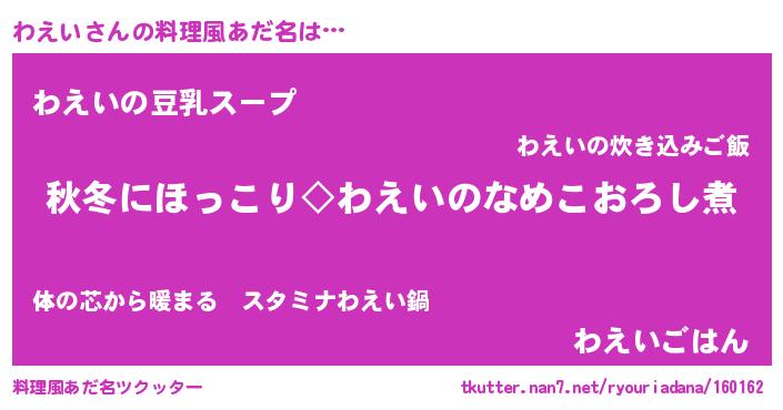 | ヒーロー風カッコイイあだ名 | 『炎刃騎士ワエ』『ウルトラわえいマン』 |