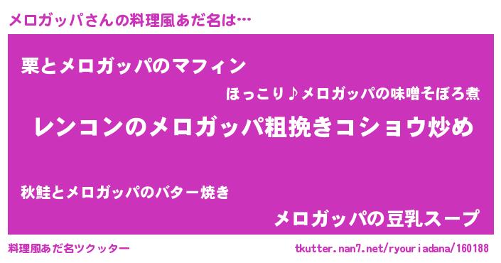 | 男性向けラノベタイトル風あだ名 | 『魔法科高校のメロガッパ』 |