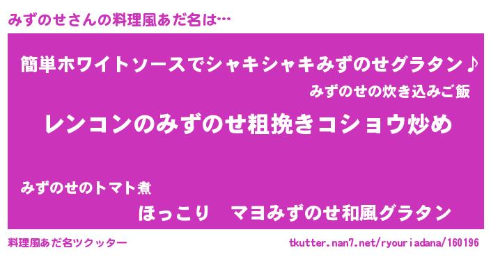 | ヘコむあだ名 | 『みずっ子』『みずにー』『牛乳』 |