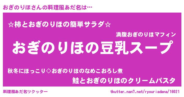 | 男性向けラノベタイトル風あだ名 | 『ダンジョンにおぎのりほを求めるのは間違っているだろうか』 |