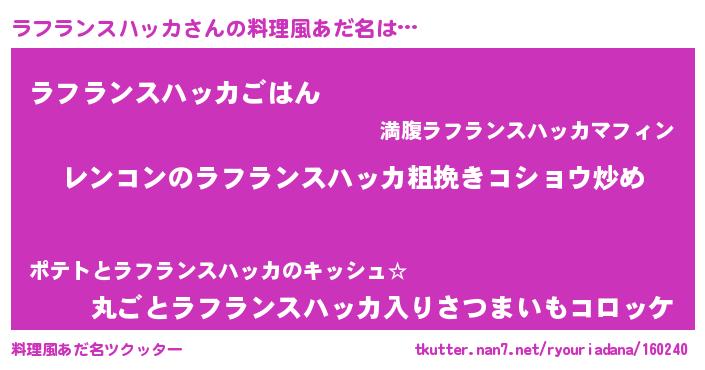 | ヘコむあだ名 | 『ラフランスハッカ(笑)』『ラフっぺ』 |