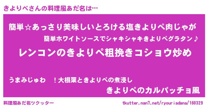 | 可愛いあだ名 | 『きようちぇる』『きよりぺママ』 |