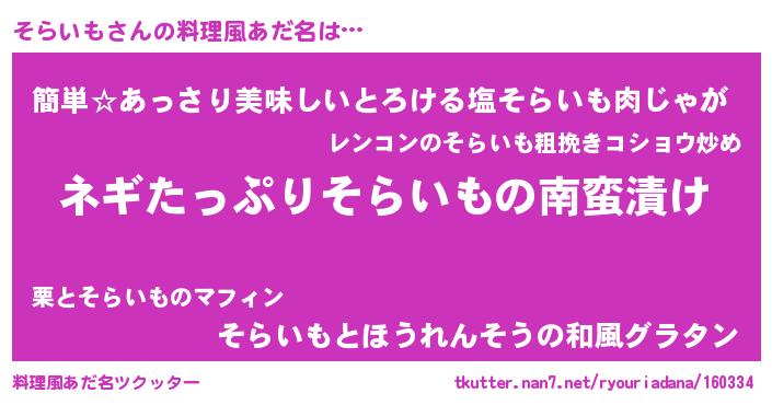 | 意味不明あだ名 | 『ペロリンそらいも』『永久保存そらいも』 |
